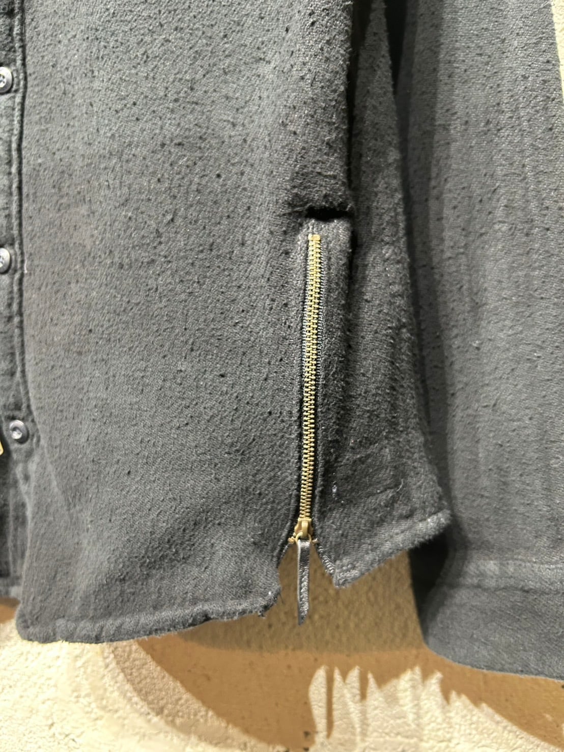 Y0834 Heavy Flannel Zip Up (black over.dye)