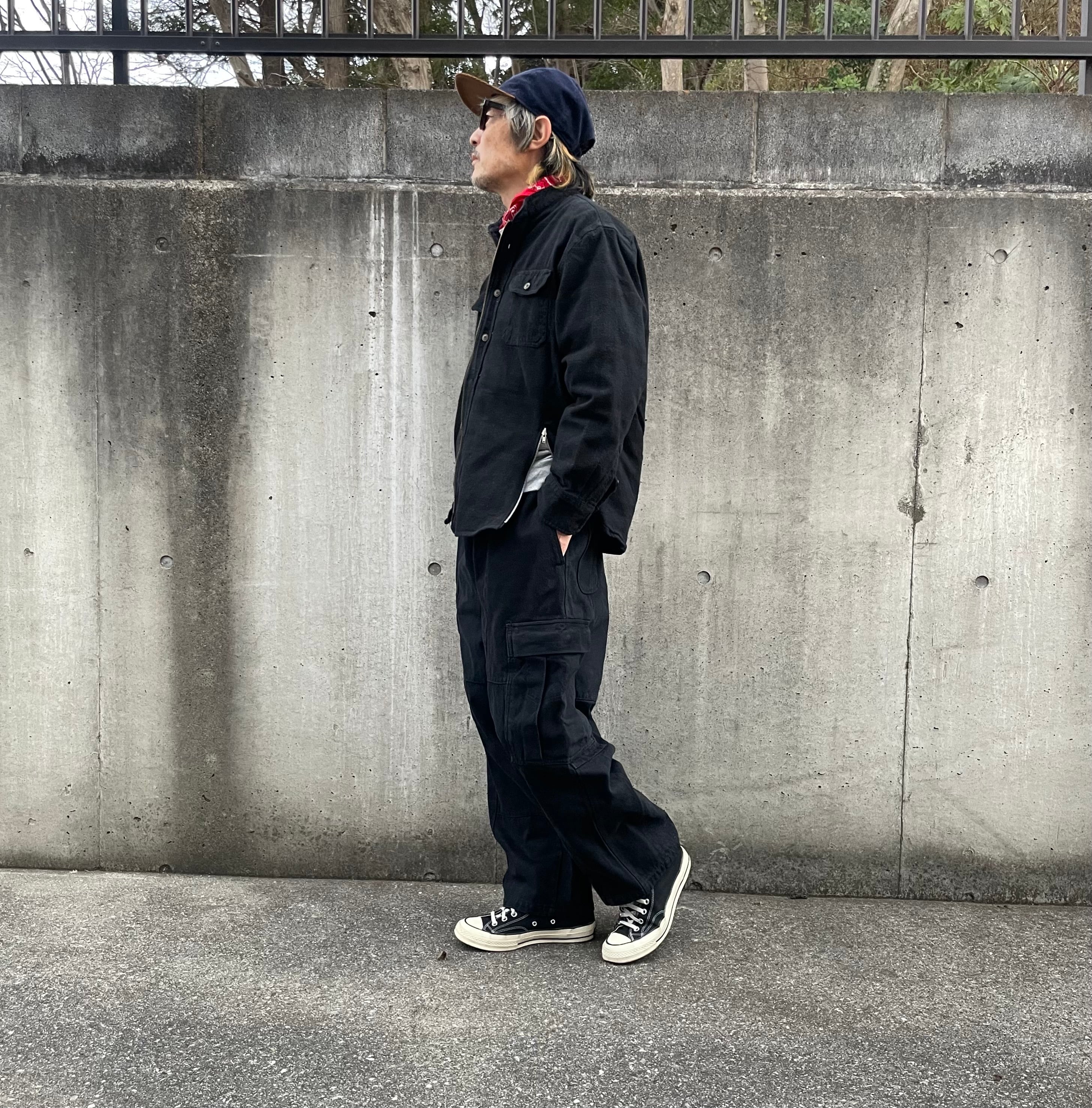 主に90年代のヘビーネル(分厚めのネルシャツ)を黒にオーバーダイ、フロントにアンティークゴールドのジッパーを取り付け2wayで楽しめる様にリメイクしました。また裾左にはもう一つアクセントとなるジッパーを取り付け全体のバランスを整えました。また襟も取り外しノーカラーに仕上げてますので、一見するとブルゾンに見えるシルエットも面白さがあります。サイズに関しては概ねメンズサイズのM/Lですが、ボディのネルシャツのオリジナリティを重視してますので一つ一つ違いがあります。詳細の寸法もご確認ください。