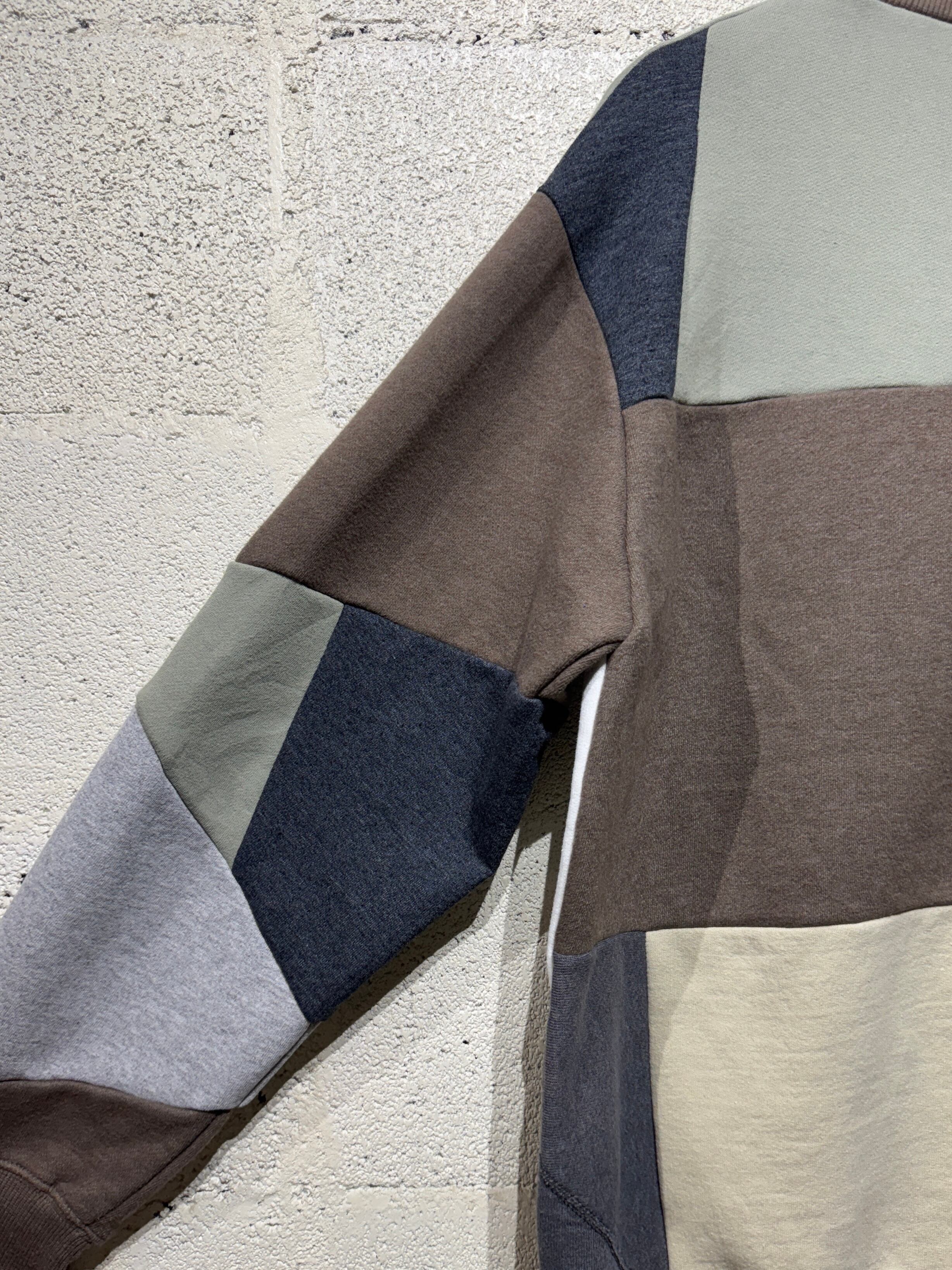 80〜90年代のUSA製に限り解体し多数のパーツを組み合わせたパッチワークスウェットです。今に無いレトロな色目が魅力的です。またパターンもカラーも固定して制作してない為、同じものは存在しない完全な1点ものになります。一見すると派手な感じがしますが柄ニットやシャツ同様の感覚で着て頂ければいいかと思います。サイズは概ね「L」サイズ中心で作っていますが個々で微妙に違いますので記載の詳細寸法もご確認ください。着画は170cmの普通体型のものがオーバーサイズ気味に着用しています。シルエットの雰囲気などご参考下さい。