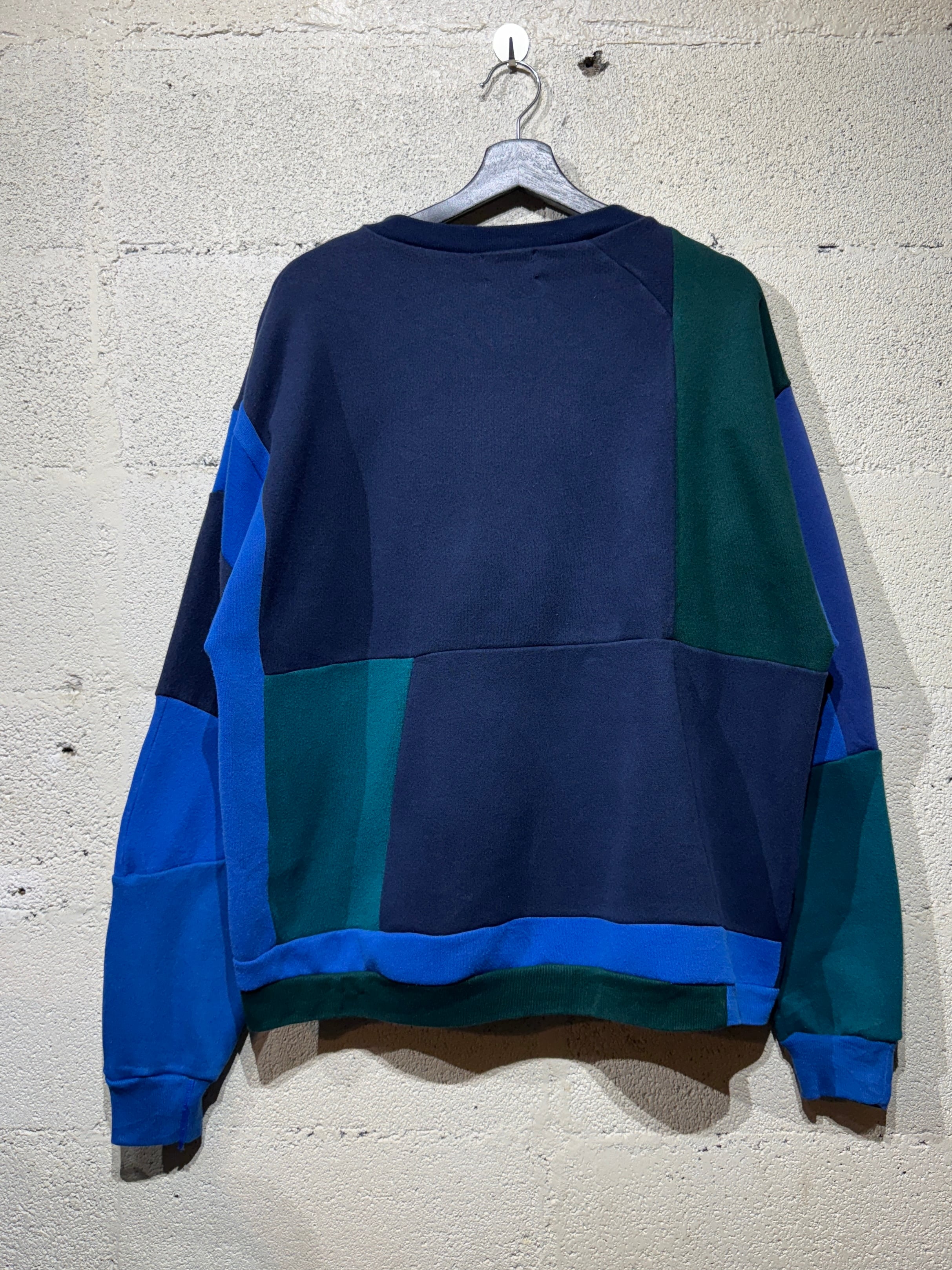 80〜90年代のUSA製に限り解体し多数のパーツを組み合わせたパッチワークスウェットです。今に無いレトロな色目が魅力的です。またパターンもカラーも固定して制作してない為、同じものは存在しない完全な1点ものになります。一見すると派手な感じがしますが柄ニットやシャツ同様の感覚で着て頂ければいいかと思います。サイズは概ね「L」サイズ中心で作っていますが個々で微妙に違いますので記載の詳細寸法もご確認ください。着画は170cmの普通体型のものがオーバーサイズ気味に着用しています。シルエットの雰囲気などご参考下さい。