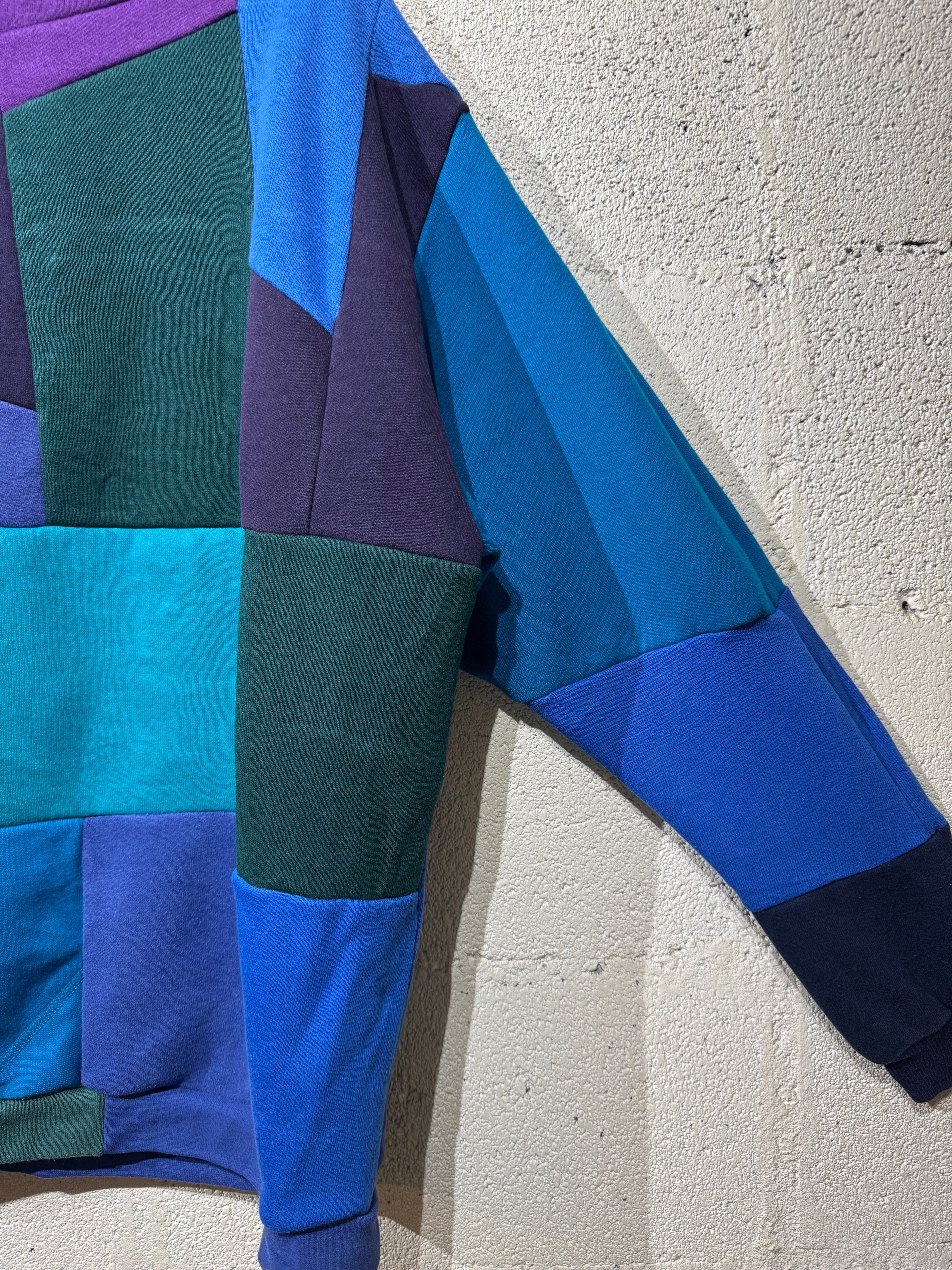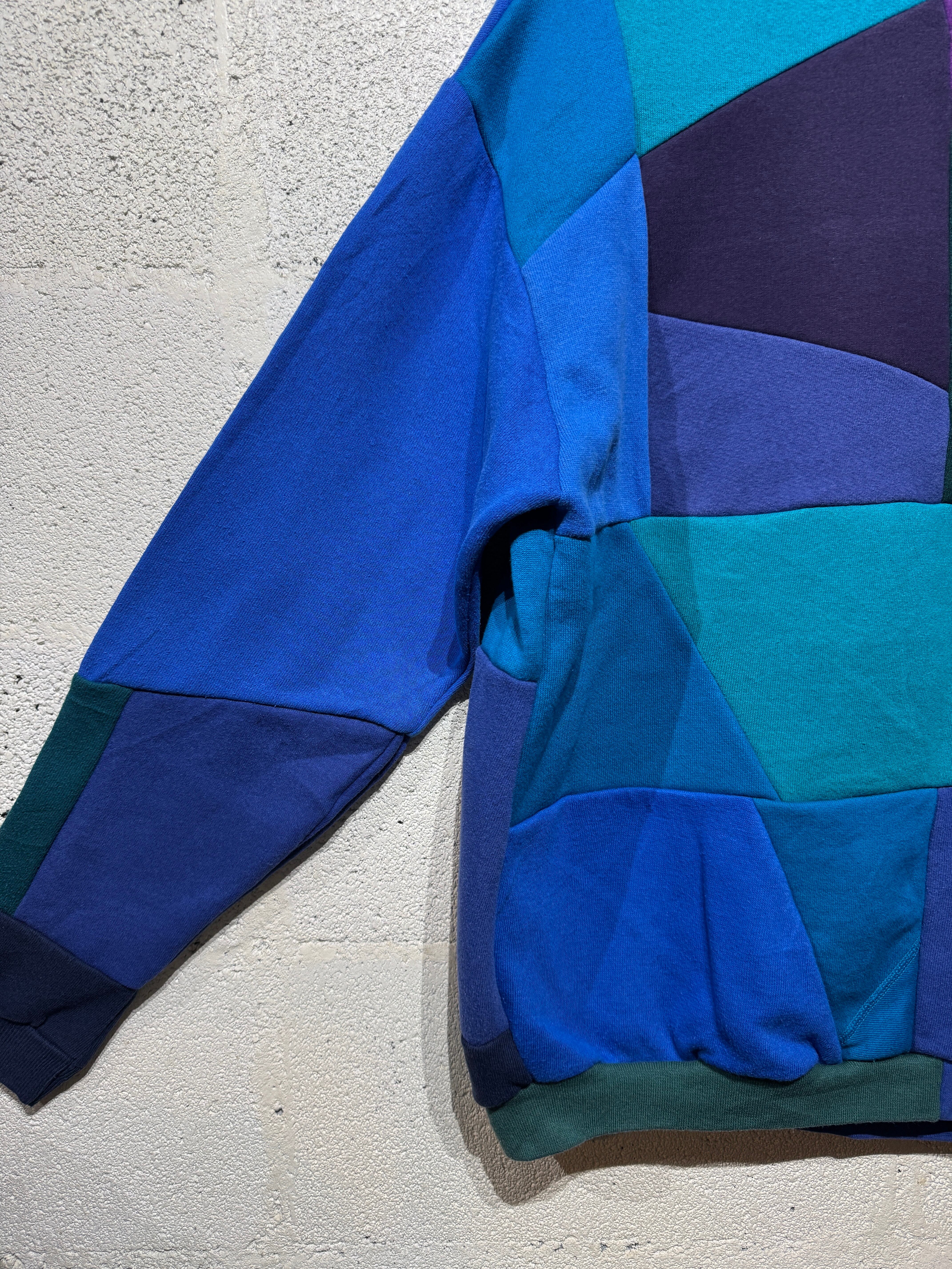 80〜90年代のUSA製に限り解体し多数のパーツを組み合わせたパッチワークスウェットです。今に無いレトロな色目が魅力的です。またパターンもカラーも固定して制作してない為、同じものは存在しない完全な1点ものになります。一見すると派手な感じがしますが柄ニットやシャツ同様の感覚で着て頂ければいいかと思います。サイズは概ね「L」サイズ中心で作っていますが個々で微妙に違いますので記載の詳細寸法もご確認ください。着画は170cmの普通体型のものがオーバーサイズ気味に着用しています。シルエットの雰囲気などご参考下さい。
