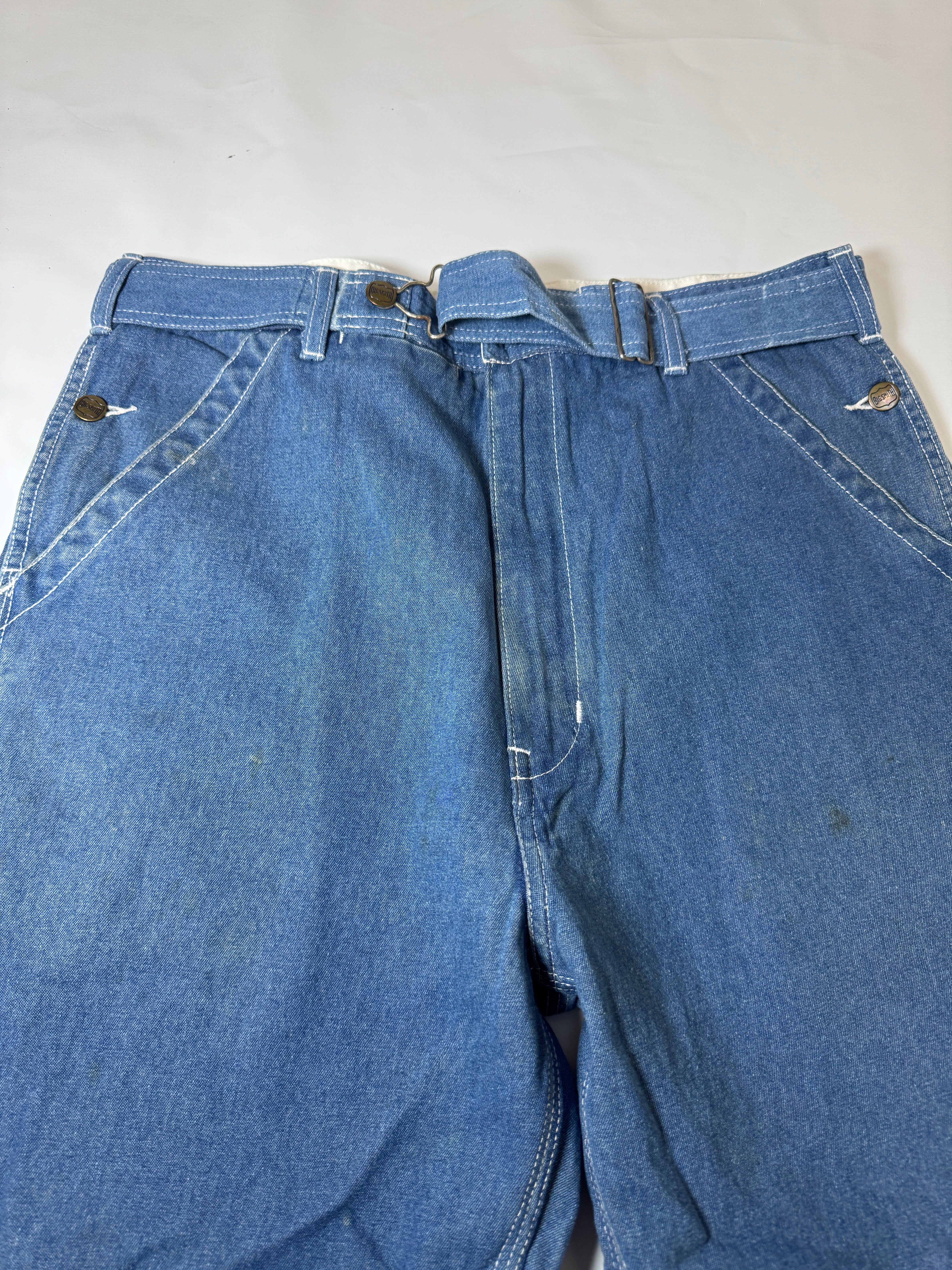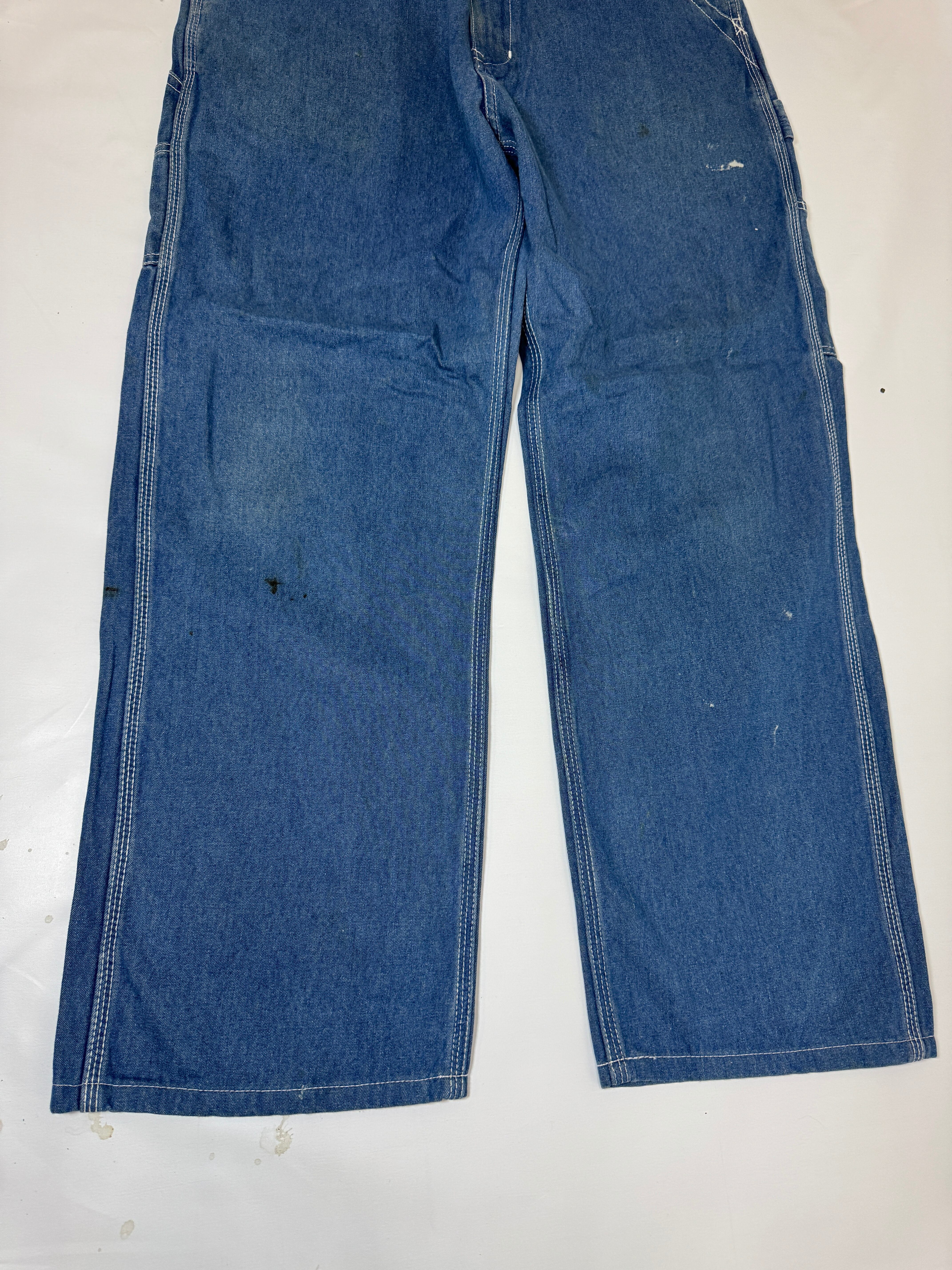 古着のオーバーオールの上部を解体してペインターパンツにリメイクしました。主に90年代のUSAものに特化してボディを選んでますので生地感、色落ちなど雰囲気良くヴィンテージのペインターパンツに近い仕上がりとなっています。ウエストはオーバーオールの肩ひも部分を利用してアジャスター式のベルトに作り替えてあります。股上も深いのでタックインしても綺麗なシルエットです。サイズは1と2の2サイズ展開です。一つ一つもとのボディにより微妙にディテールサイズが違いますのでお求めの際は詳細寸法をよくご覧くださいますようお願い致します。