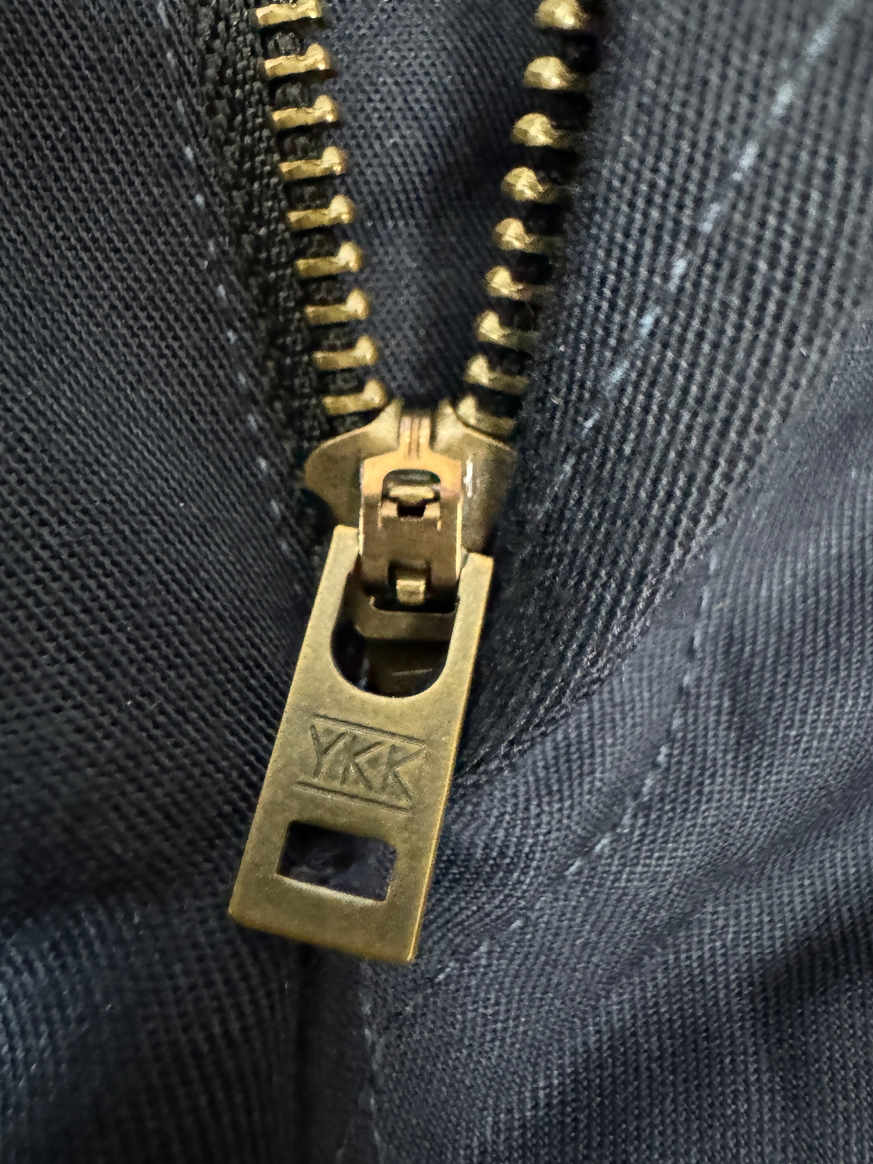 非常に太めのワタリから緩やかにテーパードがかかったシルエット。見た目のボリュームに反して軽量で、穿き心地にストレスはありません。ウエストはしっかりとした3段ゴム仕様で、体にフィットしながらも緩くなりにくい作りです。ワンタック入りのハイウエスト設計で脚長効果も◎。前後4つのポケット付きで、実用性も兼ね備えています。